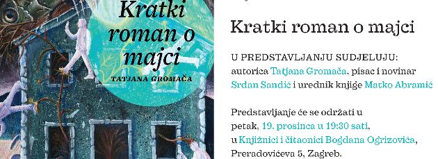 Tatjana Gromača autorica je knjige ‘Kratki roman o majci’ (Sandorf), čija će se promocija održati u petak, 19. prosinca u 19.30 sati u Knjižnici Bogdana Ogrizovića u Zagrebu. Uz autoricu,…