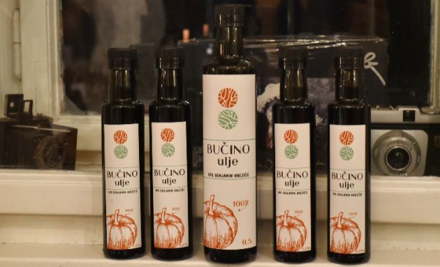 Uz ukusne zalogaje kruščića, kušalo se i domaće bučino ulje koje proizvodi OPG Benjamin Knezičić iz Gašinaca u okolici Đakova. Visoka kvaliteta ovog bučinog ulja, koje se dobiva od najboljih buča uzgojenih na obiteljskom imanju, odražava ljubav prema tradicionalnim metodama proizvodnje. Nakon berbe, pomno odabrane buče pažljivo se čiste, a sjemenke se odvajaju kako bi se osigurala najviša kvaliteta ulja. Sjemenke se zatim hladno prešaju čime se čuva svježina i hranjiva vrijednost ulja. Ovaj postupak rezultira 100% čistim bučinim uljem karakterističnog, iznimno bogatog mirisa i okusa. S obzirom da je puno vitamina, minerala i antioksidansa, domaće bučino ulje donosi i brojne zdravstvene prednosti i savršen je dodatak mnogim jelima.