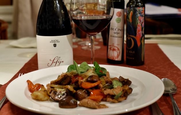Kad već pomislite da sve znate o dobro znanim Iločkim podrumima, iz njihove vinarije stigne iznenađenje, ovaj put u vidu njihova prvog monosortnog crnog vina – Cabernet sauvignon 2021 iz linije Sofija. To je sorta s kojom je teško ne napraviti dobro vino, ali da ono bude izvrsno, poput ovoga koje se našlo u čašama, za to ipak treba puno znanja, ljubavi i truda. Linija Sofija, u kojoj su još Graševina i Cuvée bijeli, namijenjena je prvenstveno HoReCa sektoru. Grožđe je odnjegovano na položaju u Iloku najbližem Dunavu, nazvanom po grofici Sofiji Odescalchi, zaslužnoj za obnovu dvorca Principovac u 18. stoljeću koji je tada poprimio oblik kakav danas ima. Cabernet sauvignon predstavila je Antonia Glavan Petanjek iz marketinga Iločkih podruma, naglasivši da je ovo kompleksno vino dvije godine odnjegovano u slavonskom hrastu. Karakteriziraju ga arome šljive, zrele višnje, nježne vanilije i dima, uz svilenkaste tanine, pa je lako našlo sklad sa slasnim Mariniranim telećim ficlekima s grilanim povrćem.