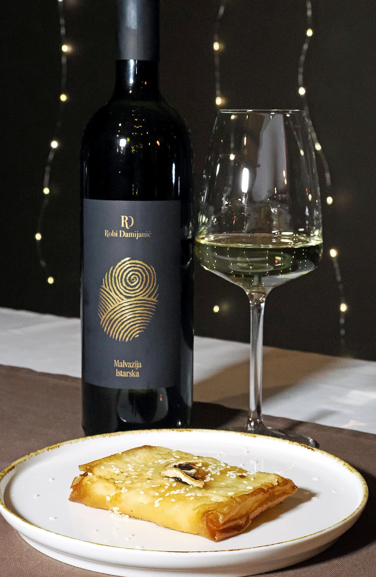 Slijedio je jelo koje nije baš na žlicu, ali se slobodno može jesti i rukom – Feta sir u bagremovom medu – u kojem se slanost sira savršeno ispreplela sa slatkoćom meda ‘upakiranom’ u hrskavo pecivo. Zalogaji su naprosto nestajali i fino se prožimali s Malvazijom 2024 istarskog vinara Robija Damijanića iz Žminja gdje nisu osobito pogodni klimatski uvjeti za uzgoj grožđa. Unatoč tome, Damijanići su vinari već četiri generacije, a kako su velika obitelj, puno su trošili svojih vina, pa su prodavali samo viškove.