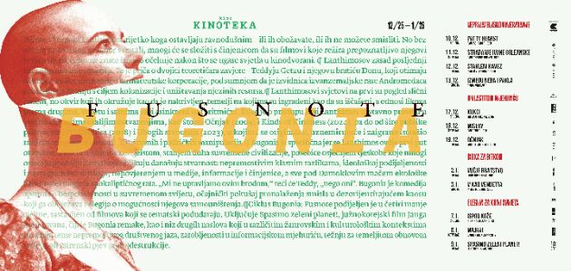 Ciklus ‘Bugonia: Fusnote’, koji se prikazauje u zagrebačkoj Kinoteci, podijeljen je u četiri manje cjeline, sastavljen od filmova koji se tematski podudaraju. Uključuje ‘Spasimo zeleni planet!’, južnokorejski film Janga Joon-hwana, čiji je ‘Bugonia’ remake, kao i niz drugih naslova koji u različitim žanrovskim i kulturološkim kontekstima istražuju teme nepremostivog društvenog jaza, zarobljenosti u informacijskom mjehuriću, težnju za temeljitom obnovom svijeta, ali i sirenski pjev (auto)destrukcije. Raspored pogledajte na: www.kinokinoteka.hr