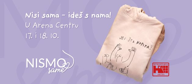 Na štandu, koji će biti postavljen u prizemlju Arena Centra, kraj trgovine Interspar, posjetitelji će pronaći omiljene majice i hoodice s ilustracijom Tisje Kljaković Braić i porukom ‘Jes šta napipa?’, kao i tunike i majice s vizualima dizajnera i umjetnika Zorana Aragovića, Zorana Mrvoša, Jurja Zigmana i Slavena Kosanovića Lunara. U ponudi će biti i standardni proizvodi Udruge: torbe, bočice, narukvice i drugi predmeti s logom Nismo same.