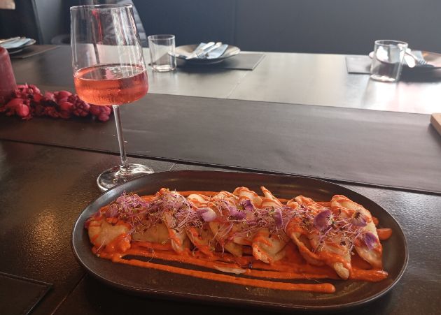 Iz iste plješivičke vinarije bilo je i drugo vino – pjenušavi Le Rosé, također od pinot noira, koji je činio jako dobar par s Raviolima (maslinovo ulje, korica, mascarpone, crvena roga paprika). Izvana su hrskavi, iznutra mekani i maštovito prezentirani, s jestivim cvijećem, kojeg očito obožava chef Hrvoje Ćerlek. Za pohvaliti je i desert – sofisticirani Ganache od bijele čokolade s kruškom, koji se topi u ustima.