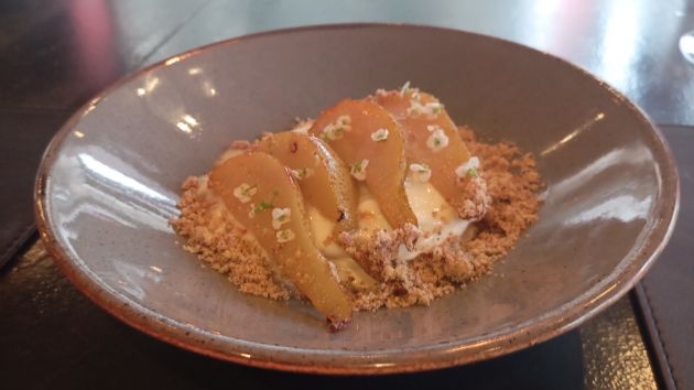 Iz iste plješivičke vinarije bilo je i drugo vino – pjenušavi Le Rosé, također od pinot noira, koji je činio jako dobar par s Raviolima (maslinovo ulje, korica, mascarpone, crvena roga paprika). Izvana su hrskavi, iznutra mekani i maštovito prezentirani, s jestivim cvijećem, kojeg očito obožava chef Hrvoje Ćerlek. Za pohvaliti je i desert – sofisticirani Ganache od bijele čokolade s kruškom, koji se topi u ustima.
