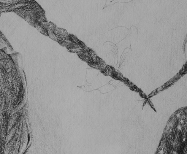 Ciklus ‘Matriksijalne priče’ (2011.–2014.) Ines Matijević Cakić sastoji se od devet crteža nastalih tijekom trudnoće. Rad funkcionira kao arhiv trajanja i metoda samopromatranja, u kojoj se trudnoća ne prikazuje kao herojstvo, već kao praksa ostajanja i izdržavanja. Kroz fragmentirane prizore doma i tijela autorica tematizira narušeni integritet i majčinstvo kao složen, iscrpljujući i transformativan proces, obilježen zastojima i kontinuiranim odnosima.